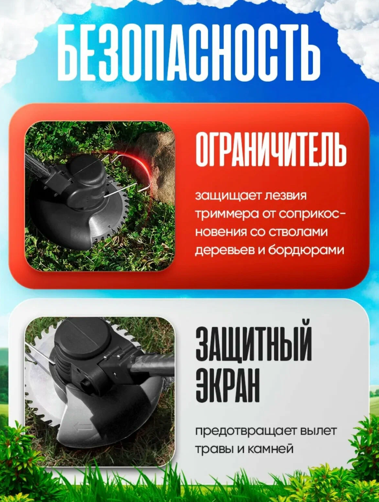 Косит любые сорняки. Идеально ровный газон за несколько минут.